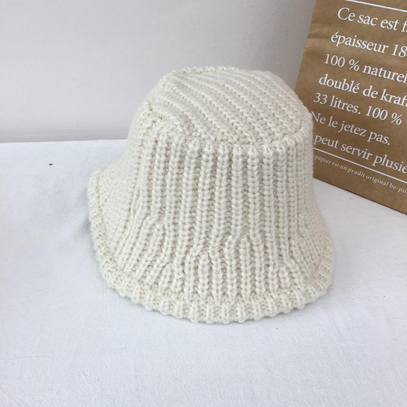 Шерстяная шапка женская осенне-зимняя утолщенная теплая полосатая шляпа-ведро с плоским верхом, повседневная вязаная панама M(56-58cm) молочный белый