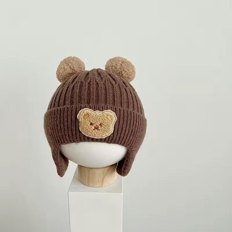 Шерстяная шапка, защитная шапка для ушей, детская зимняя толстая теплая вязаная шапка, детская шапка кофейный