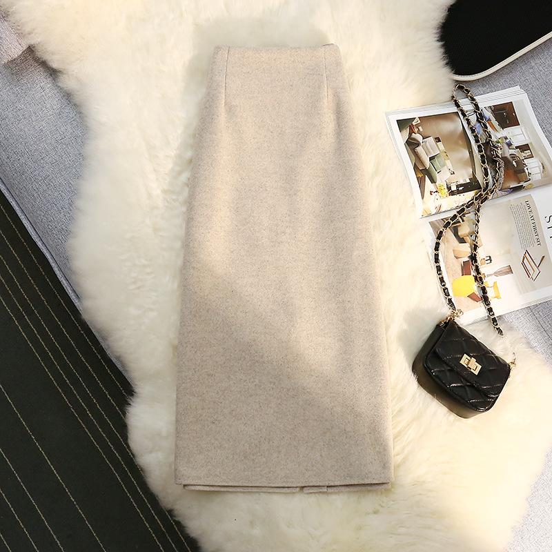 Шерстяная юбка средней длины, женская, новый зимний стиль, высокая талия, разрез, прямая юбка, закрывающая бедра, юбка XL
