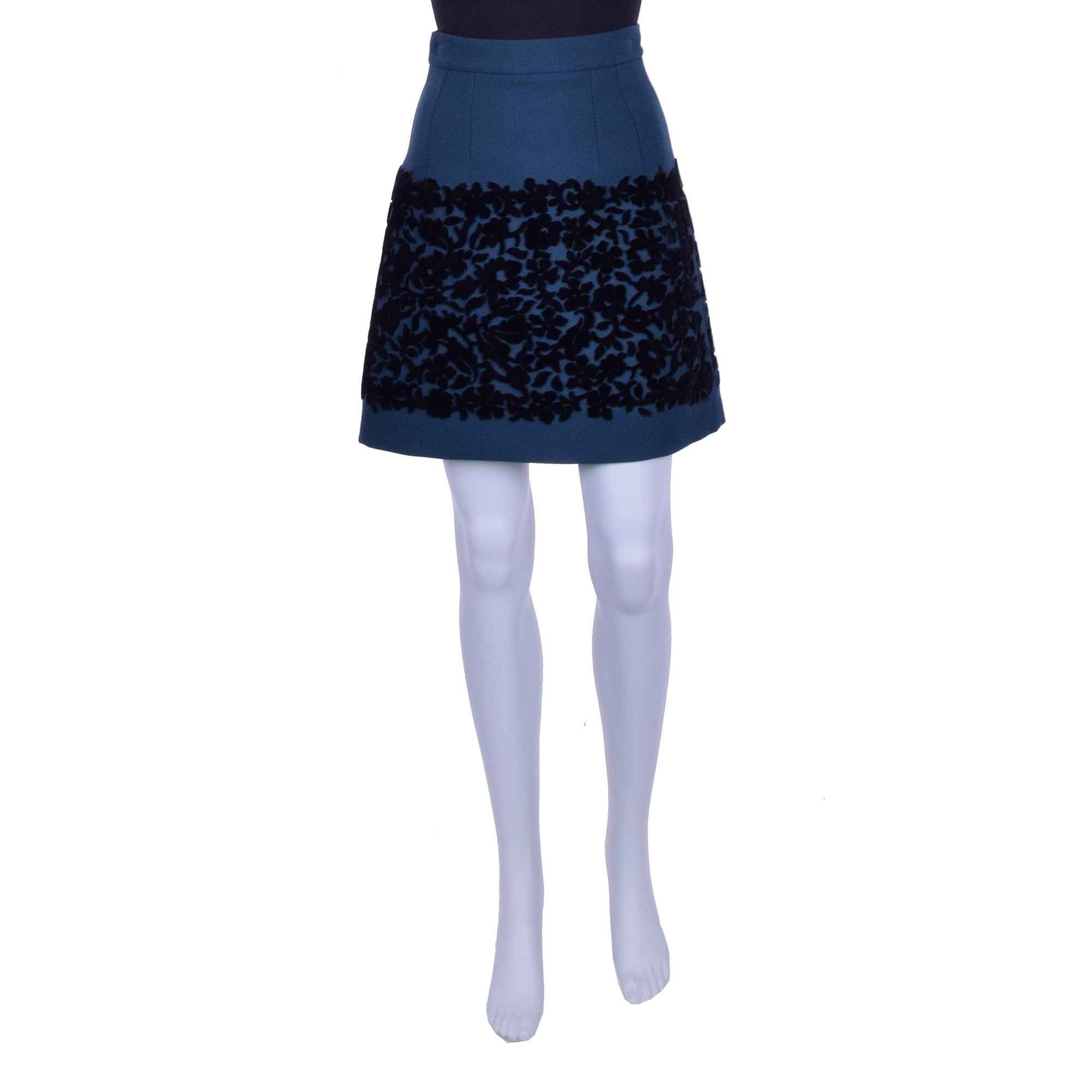 Шерстяная юбка Dolce - Gabbana с вышивкой бархатными цветами Зеленый Черный 07080