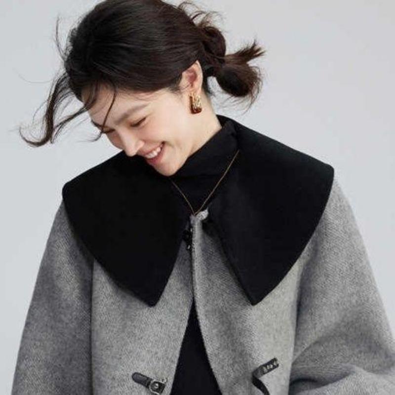 Шерстяной большой воротник с лацканами и поддельным воротником с пальто, модная шаль для куклы чёрный