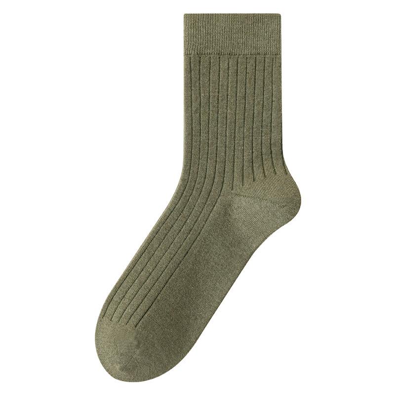 Шерстяные носки, Мужские весенне-осенние теплые полосатые носки до середины икры, Акриловые согревающие длинные носки, Осенне-зимние антибактериальные однотонные носки 1 pair армия зеленый