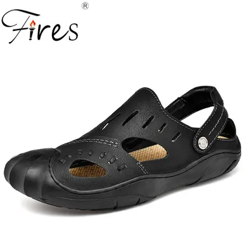 Fires New Fashion Man's Driving Sandals Artificial Leather Outdoor Shoes Non-slip Wearable Soles Flat Shoes Tide Casual Shoes