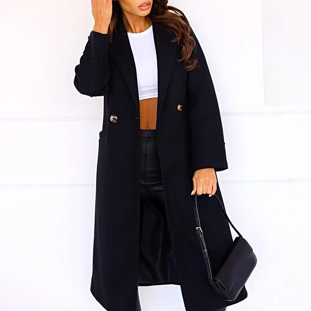 Шикарное зимнее пальто, верхняя одежда, мягкое Женское пальто с карманами, свободное Женское пальто с двумя пуговицами для покупок