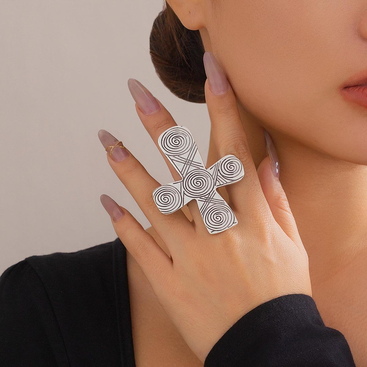 Шикарное преувеличенное металлическое кольцо-крест в форме сердца K 0694 белый