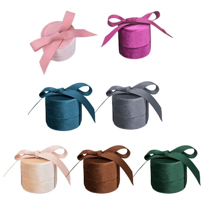 Шикарный футляр для хранения ювелирных изделий с бантиком, компактный бархатный ящик для хранения ювелирных изделий с бантом для