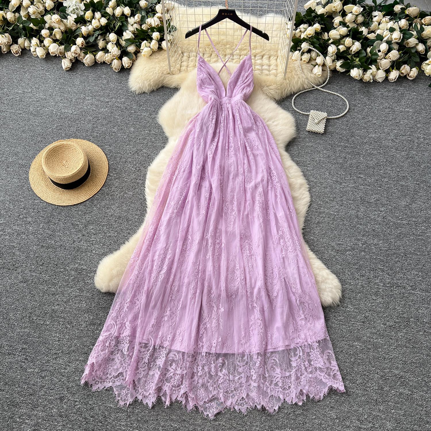 Шикарный элегантный V-образный вырез кружева с открытыми плечами феерия пляжный отдых вечеринка женские летние платья А-силуэта женская одежда XL светло-фиолетовый