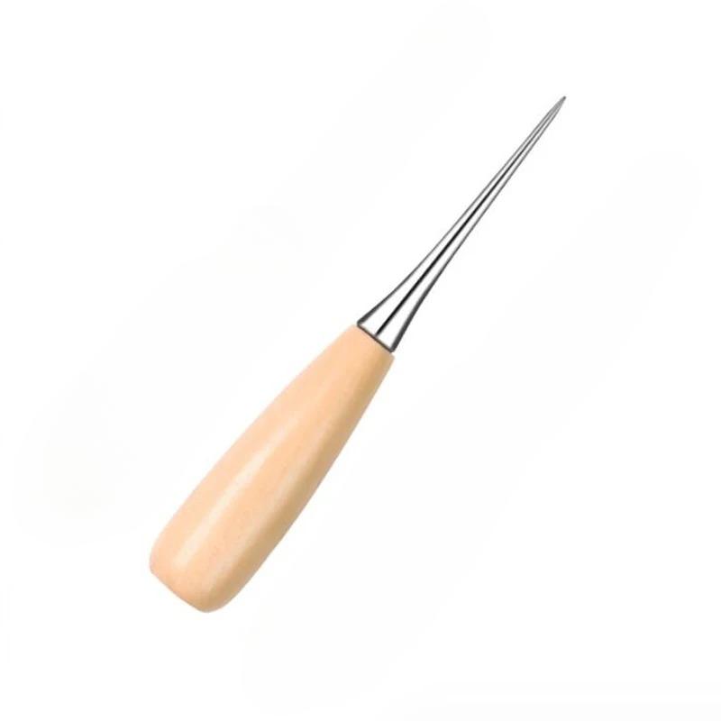 Шило с круглой ручкой из цельного дерева, шило для кожи и текстиля с ножнами, шило для шитья, ручные инструменты для текстиля 1pcs