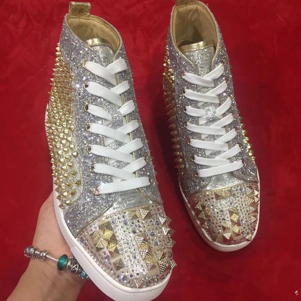 Шипы, Strass, New Style High Top красной подошвой кроссовки обувь Mens женщин Роскошная Узелок