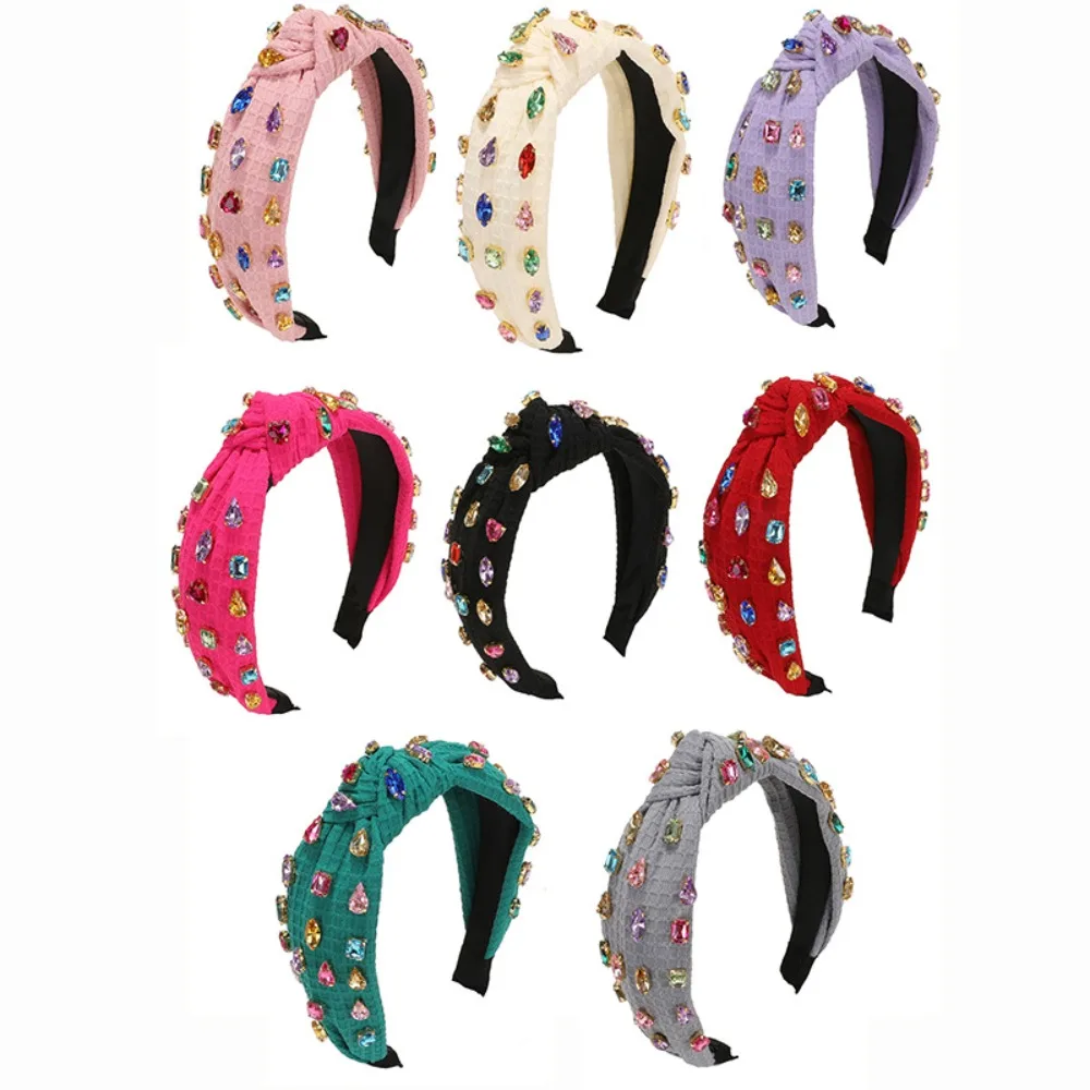 Широкая шпилька для волос, повязка на голову, тканевая художественная повязка на голову с кристаллами, плиссированная повязка на голову
