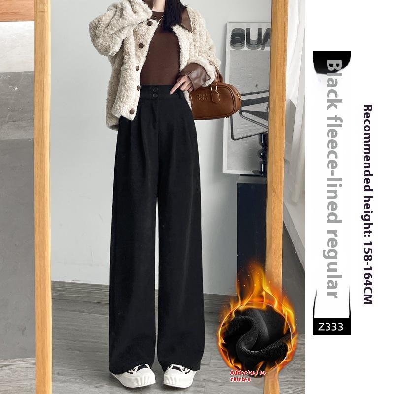 Широкие брюки 2024 года, новые прямые брюки с высокой талией, осенне-зимние, бархатные, повседневные, серые, костюмные, вельветовые брюки для женщин S [80-45kg] чёрный