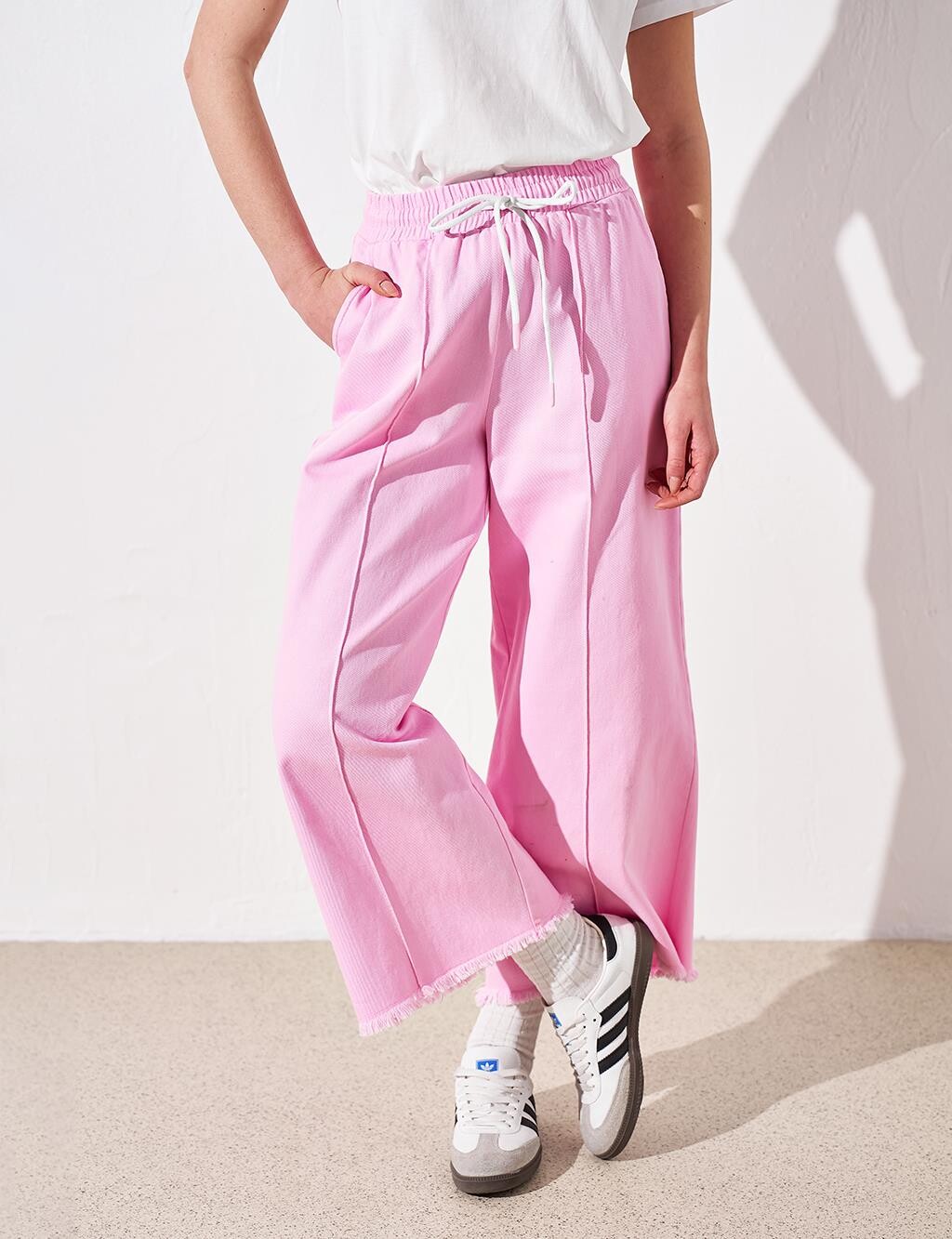 Широкие джинсовые брюки с кисточками ярко-розового цвета Kayra