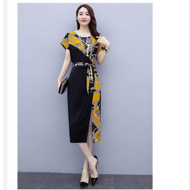 Широкое женское платье, женское летнее платье, новый стиль, талия вашей дамы, тонкая темпераментная летняя юбка 3XL чёрный