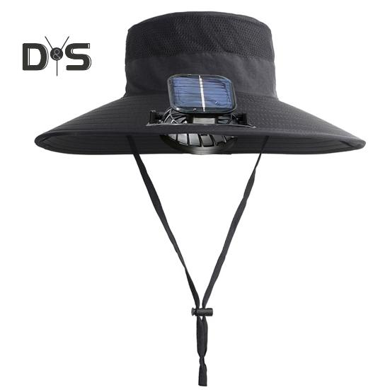 Широкополая шляпа от солнца с солнечным вентилятором, дышащая сетчатая шляпа с вентилятором на солнечной батарее, детская солнцезащитная шляпа чёрный