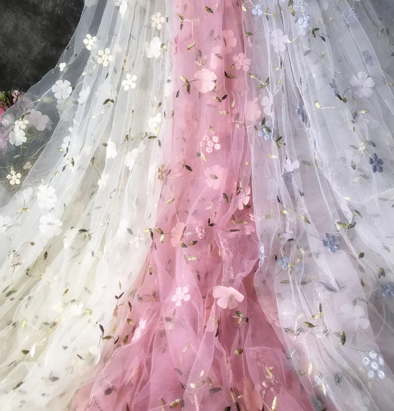 Шитье «сделай сам», 3D цветочная ткань, мягкая Тюлевая ткань для платья, занавески, вечернее платье, сценическая мода, показывает ширину 130 см, сетчатая ткань