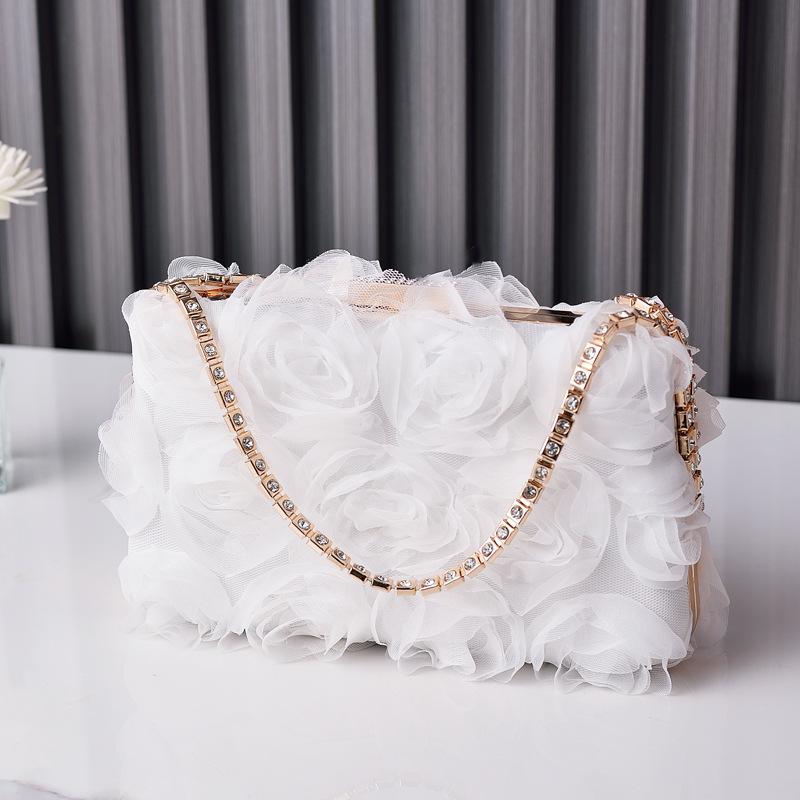 Шифоновая сумка-клатч с цветком, шампань, женская сумка для ципао, сумка ручной работы для платья, элегантная и роскошная сумка для ювелирных изделий с бриллиантами One Size