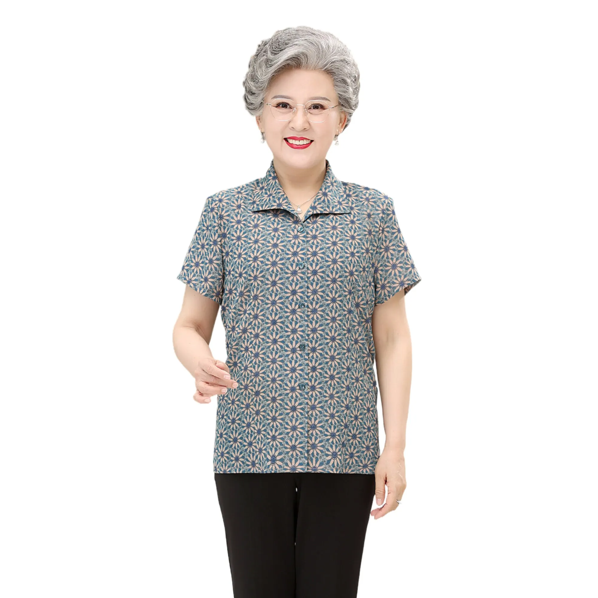 Шифоновая тонкая женская блузка с коротким рукавом для пожилых людей