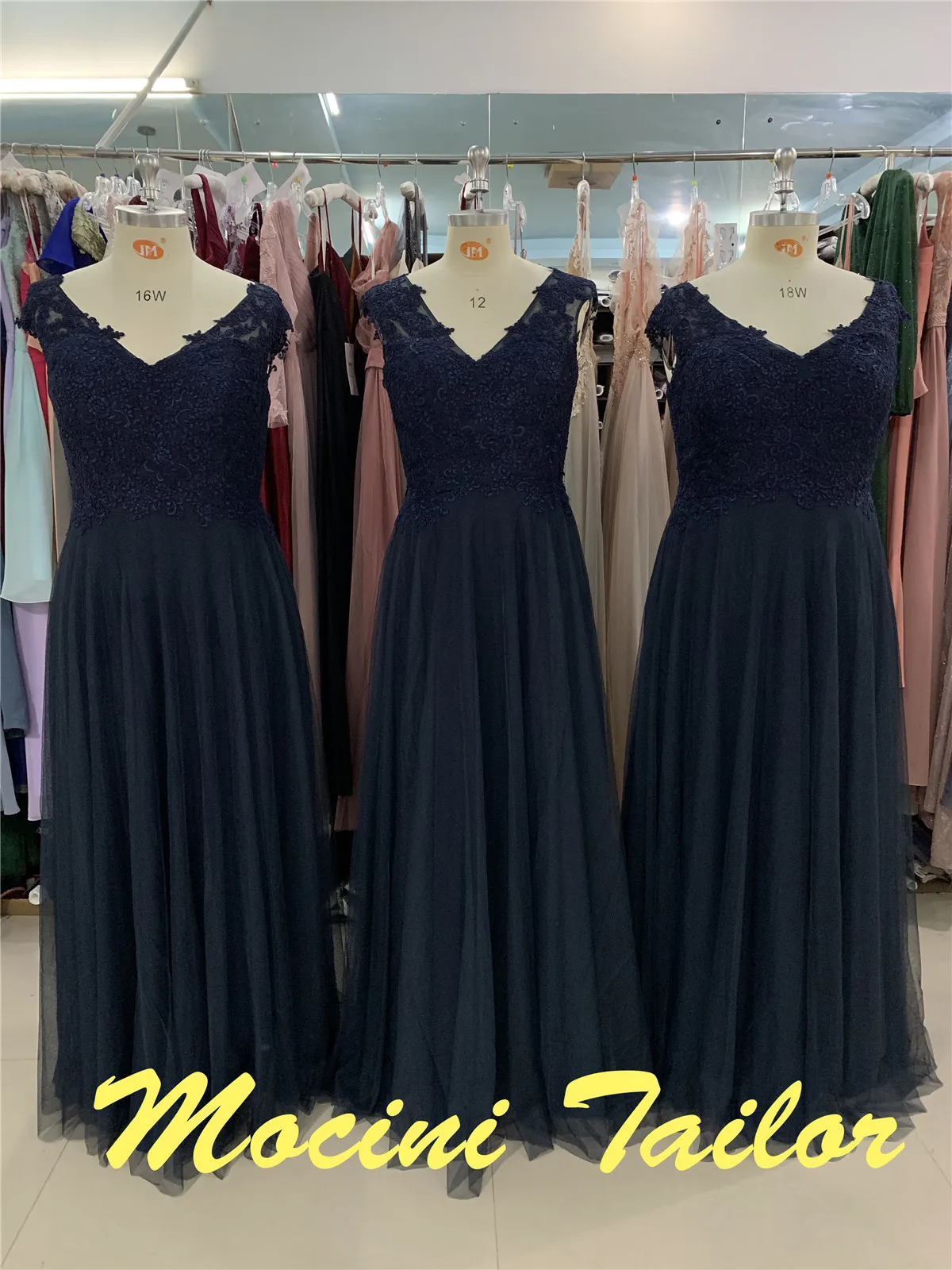 Шифоновое кружевное платье для подружки невесты, темно-синего цвета, 2024