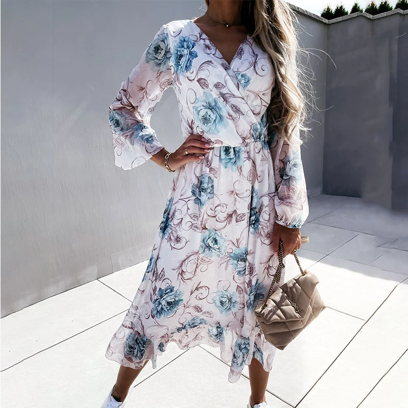 Шифоновое платье с длинным рукавом и принтом для детей, новинка 2021, осенний стиль, французская мода, с длинным рукавом, для ранней осени, мале...