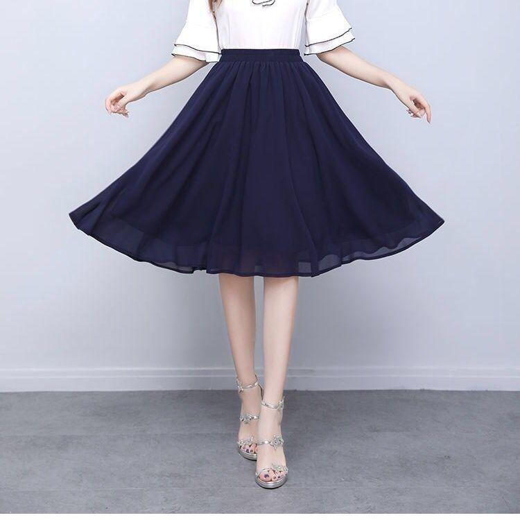 Шифоновое полуплатье женское, летнее, средней длины, большой размер, юбка-зонтик, высокая талия, большая распашная юбка трапециевидной формы One Size синий