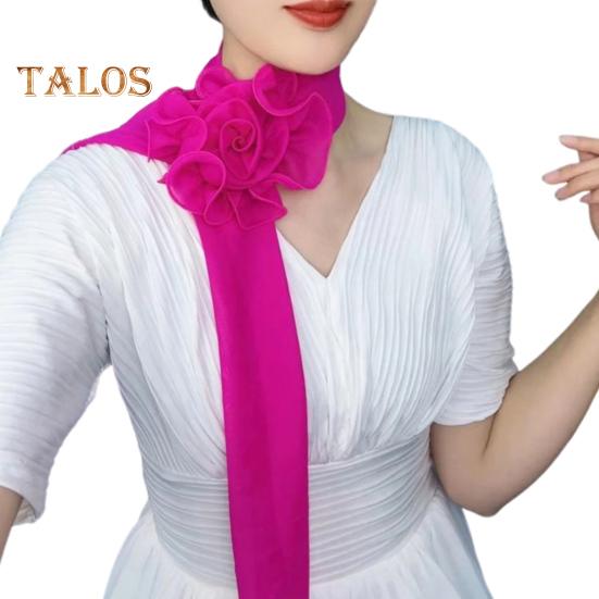 Шифоновый атласный длинный шарф с цветочным декором, дышащая универсальная пляжная шаль, защита от солнца, шифоновая шаль, повседневная одежда