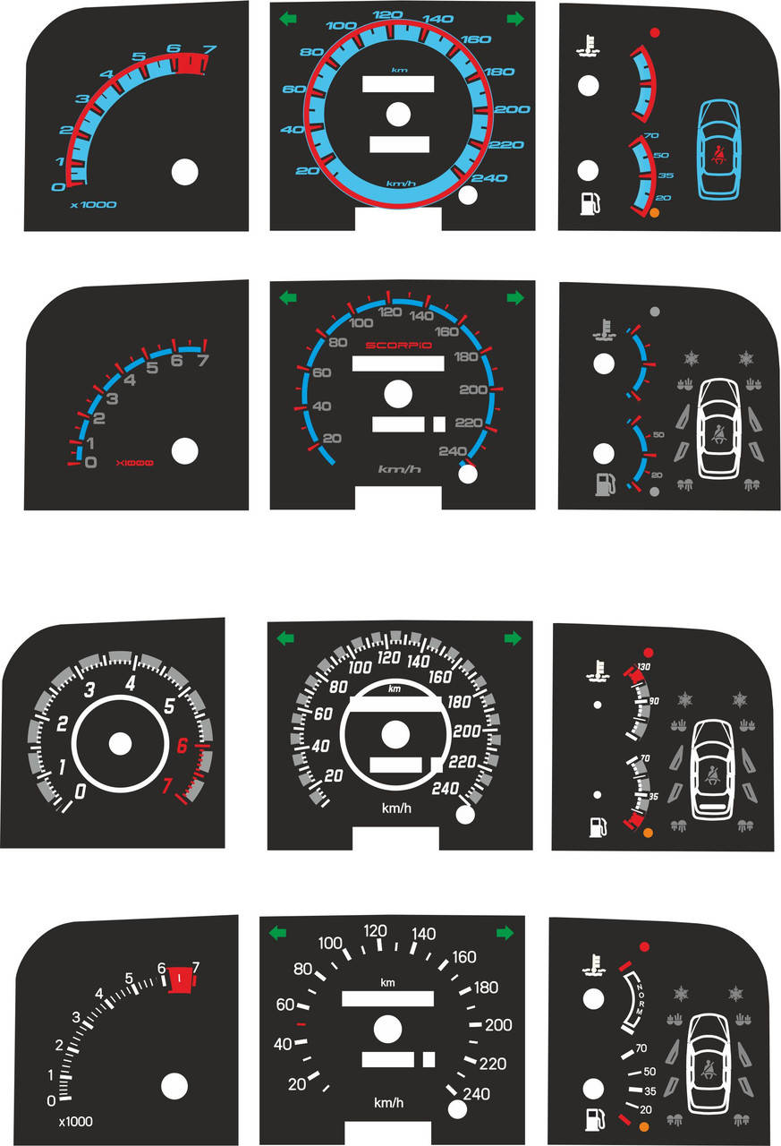Шкалы приборов Ford Scorpio. Деления и цифры на просвет. Материал термостойкий пластик 0,7мм, заливка матовой черной в 3 слоя + компьютерная порезка. Возможно сделать шкалы по вашему дизайну и на любое авто. Отправляю любым перевозчиком в любой регион Украины.