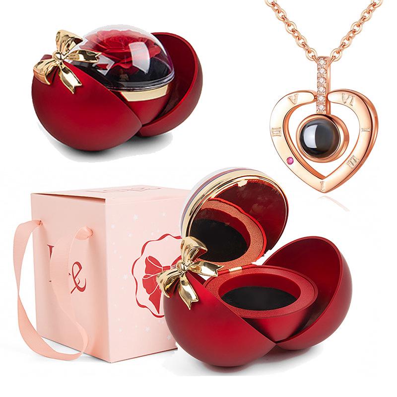 Шкатулка для украшений «Роза»: Круглая магнитная подарочная коробка на День святого Валентина или Рождество. Колье и кольцо.
