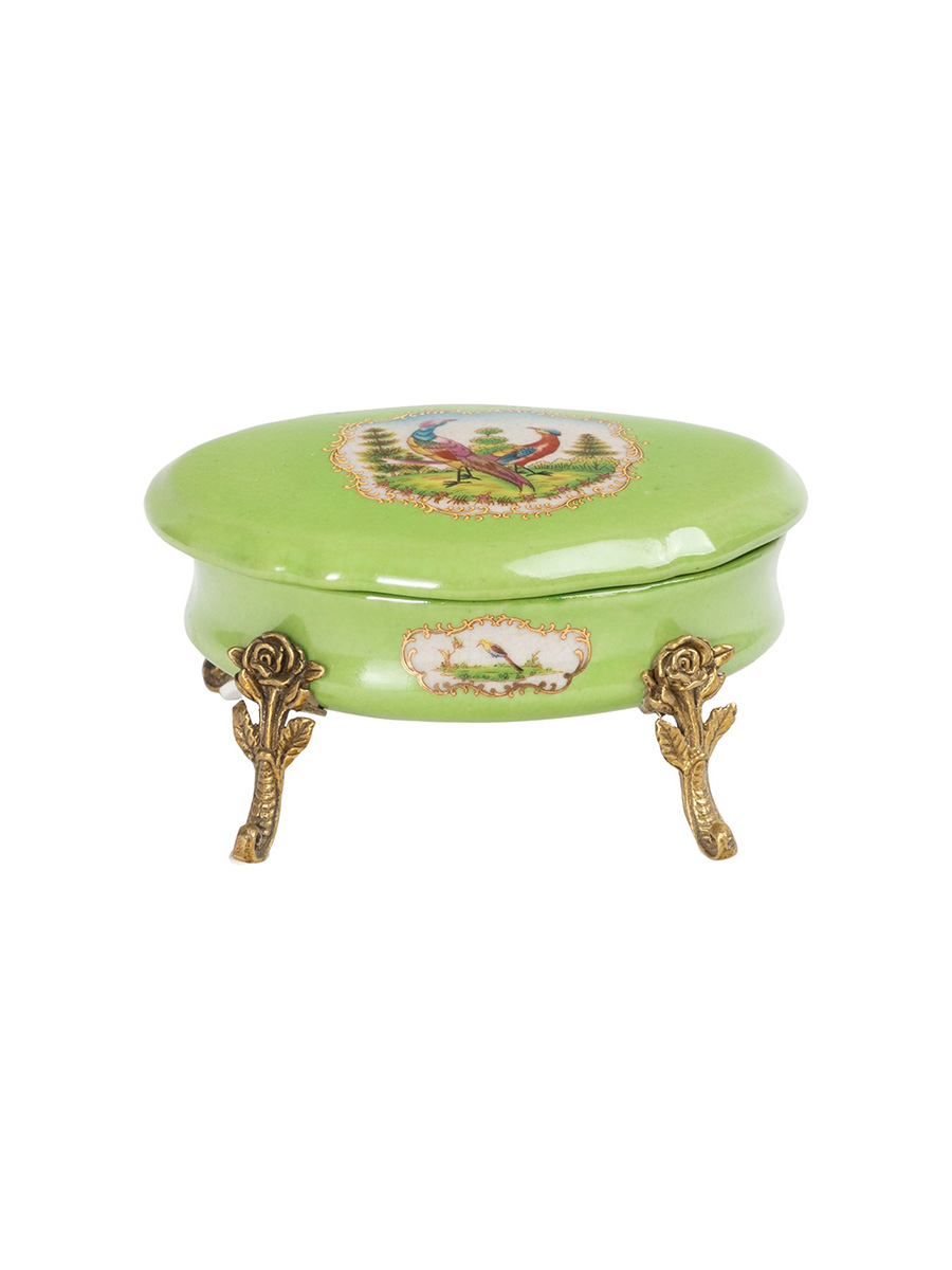 Шкатулка Уникальное изделие ручной работы. При производстве этих художественных изделий из фарфора с бронзой используются вековые традиции китайских мастеров. Видимые трещинки (кракелюры) делаются по уникальной технологии, что придает более благородный вид старинного изделия. Размер: 13х9х6см. Материал: Фарфор, бронза. Вес изделия: 0,425 кг. Шкатулка интерьерная - это стильный и практичный предмет, который поможет организовать пространство и хранить драгоценности в безопасности. Она идеально подходит для хранения сережек и браслетов, при этом дополнительно выглядит изящно и элегантно. Главное преимущество шкатулки для украшений - это удобство. Внутреннее пространство позволяет разместить каждое украшение отдельно и предотвратить их переплетение или повреждение. Шкатулка для колец и других украшений - это отличный подарок для близкого человека на праздники, такие как Новый год и Рождество или 8 марта. Она не только практична, но и символизирует заботу и внимание к хобби и стилю близкого человека. Кроме того, шкатулка для бижутерии может стать частью интерьера в доме или на рабочем столе. Ее элегантный дизайн и качественные материалы будут украшать любое место и напоминать о заботе и внимании, которые были вложены в выбор подарка. Организует пространство на Вашем туалетном столике, но при этом все будет находится под рукой.