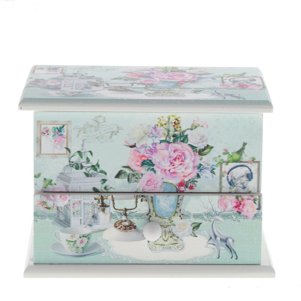 Шкатулка - 1 шт. Шкатулка для украшений музыкальная, длина 13 см. Шкатулка музыкальная - великолепный подарок для любительниц украшений и модниц. Изделие выполнено в форме комода с откидной крышкой и выдвижным ящичком. Поверхность украшена декором в стиле "Прованс". На внутренней части крышки встроено зеркало для удобства примерки украшений. Представляем вашему вниманию шкатулку, это не просто контейнер для хранения, а истинное произведение искусства, которое украсит любой интерьер и подчеркнет вашу индивидуальность. Изготовленная из высококачественных материалов, она обладает прочной конструкцией и долговечностью, что позволяет доверить ей хранение самых ценных и хрупких предметов. Размеры шкатулки подобраны идеально, что делает её идеальной для хранения разнообразных мелочей: ювелирных изделий, важных документов, памятных фотографий или даже мелких коллекционных предметов. Благодаря такому размеру, шкатулка легко поместится на столе, полке или в комоде, оставаясь при этом стильным акцентом в вашем пространстве. Одна из главных особенностей шкатулки, это её изысканный дизайн. Высококачественная отделка, добавляет нотку шика и строгости. Декоративные элементы выполнены с внимание к деталям, что делает каждую шкатулку уникальной. Открывая такой подарок, каждый ощутит ту заботу и уважение, с которыми вы его выбирали. Кроме того, шкатулка является отличным вариантом для хранения различных мелочей в офисе или на рабочем месте. С её помощью вы сможете упорядочить рабочие принадлежности, такие как канцтовары, флешки или документы, сохраняя порядок и наведенность в своем пространстве. Это не просто шкатулка, а стильный аксессуар для хранения и организации ваших драгоценностей, воспоминаний и секретов. Приобретая шкатулку вы выбираете качество, стиль и надежность!