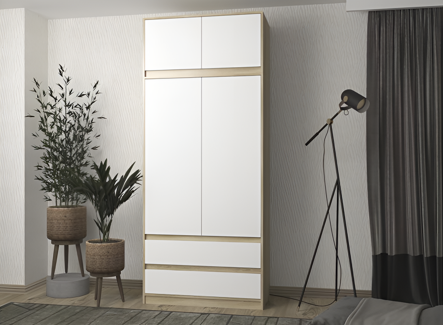 Распашной шкаф "Chelsea 1-1" гармонично впишется в интерьер современной спальни, прихожей, гостиной и кабинета. Двухдверная распашная модель оборудована платяным отделением для одежды на плечиках, секцией с бельевыми полками, выдвижными ящиками и дополнительным отделением сверху. Эффектный вид. Лаконичная форма. При глубине шкафа менее 500мм вместо обычной штанги устанавливается выдвижной кронштейн. Внимание! Оттенок цвета может отличаться, в зависимости от настроек Вашего монитора.