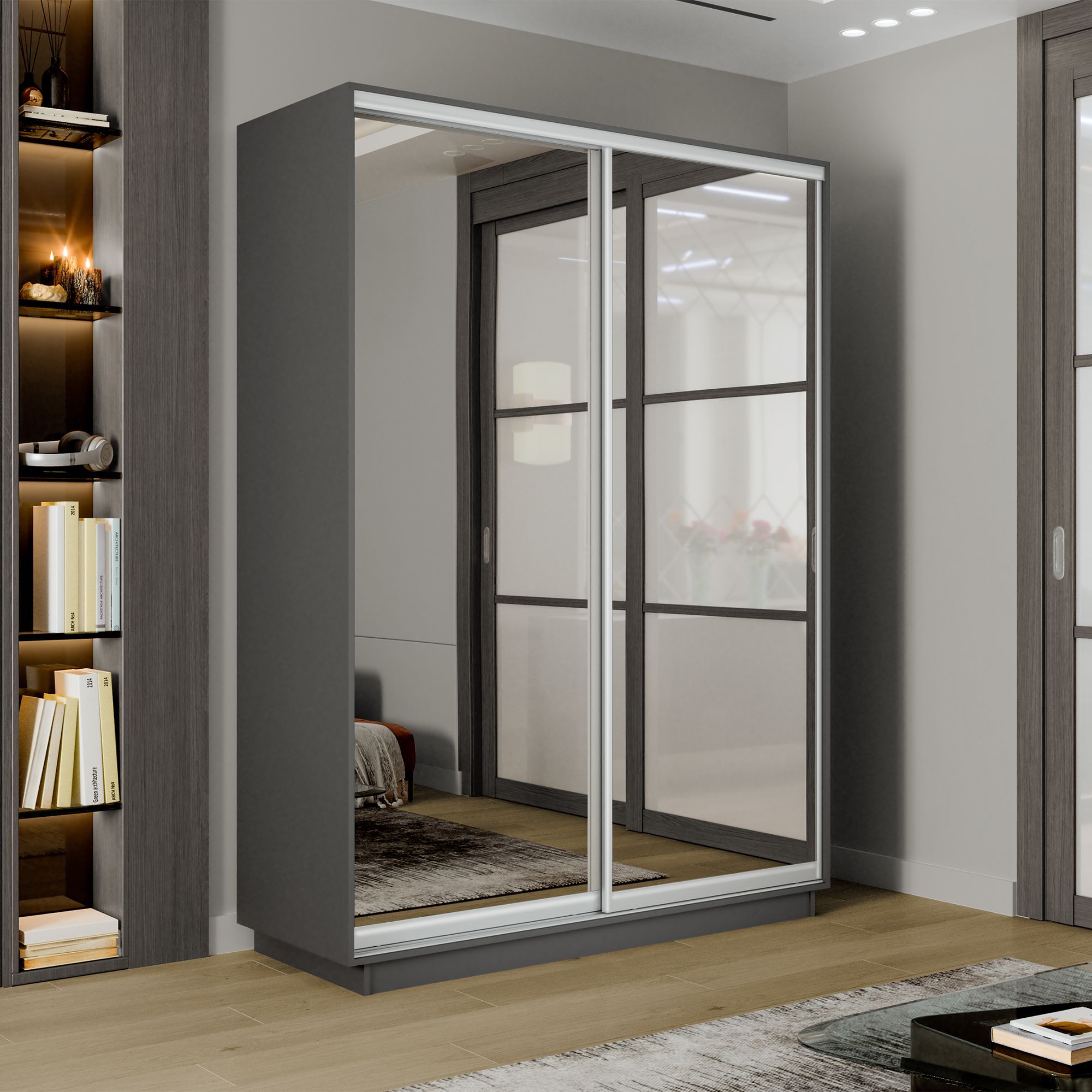 Шкаф-купеЕ1 Экспресс Зеркала 160х45х220, Серый диамант, Экспресс
