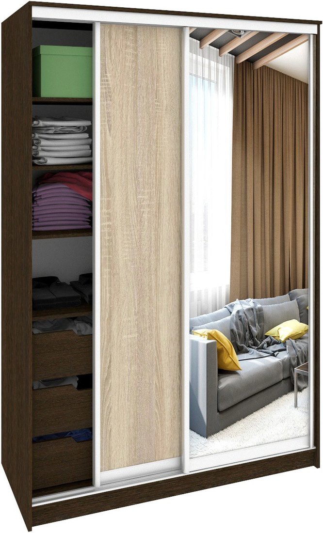Шкаф-купе Кортекс-мебель Сенатор ШК10 Классика ДСП с зеркалом (венге/дуб сонома)