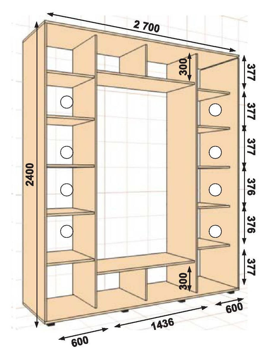 Шкаф-купе 2700х600х2400 Алекса - 3 фасада купить в Украине
