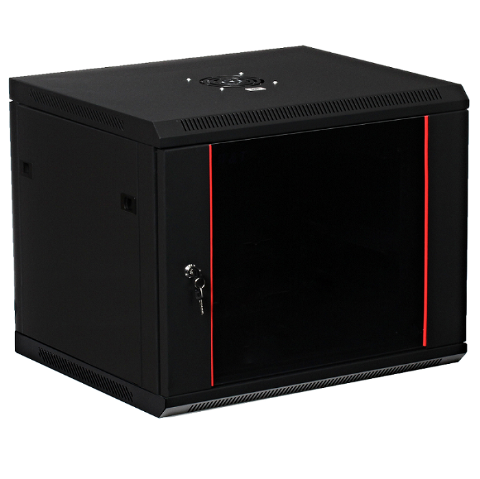 Шкаф настенный 19", 9U W&T C096050BWTWOF 600x500 мм, дверь стекло, цвет черный. Без вент., C096050BWTWOF