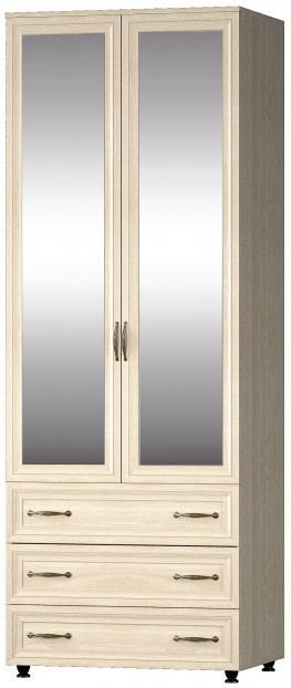 Шкаф распашной Премиум Гармония двухстворчатый с ящиками с зеркалами (шимо светлый)