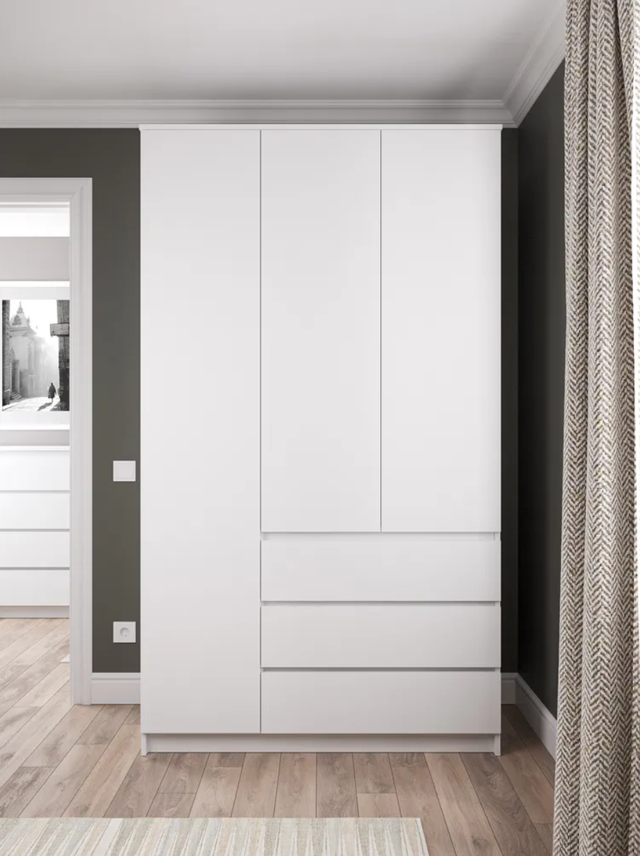 Шкаф Уинстон - оснащённый 3 распашными дверьми с системой Push To Open, разнообразными полочками и 3 выдвижными ящиками - станет идеальным решением для хранения одежды и аксессуаров, которое подойдет для любых пространств, от маленьких спален до больших гардеробных комнат. Внимание! Оттенок цвета может отличаться, в зависимости от настроек Вашего монитора.