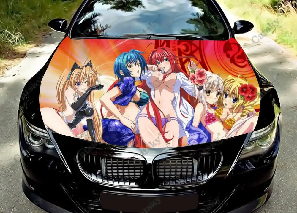 Школьная виниловая наклейка DXD с сексуальной девушкой на капот автомобиля, виниловая пленка, наклейки на крышку двигателя, универсальная защитная пленка на капот автомобиля
