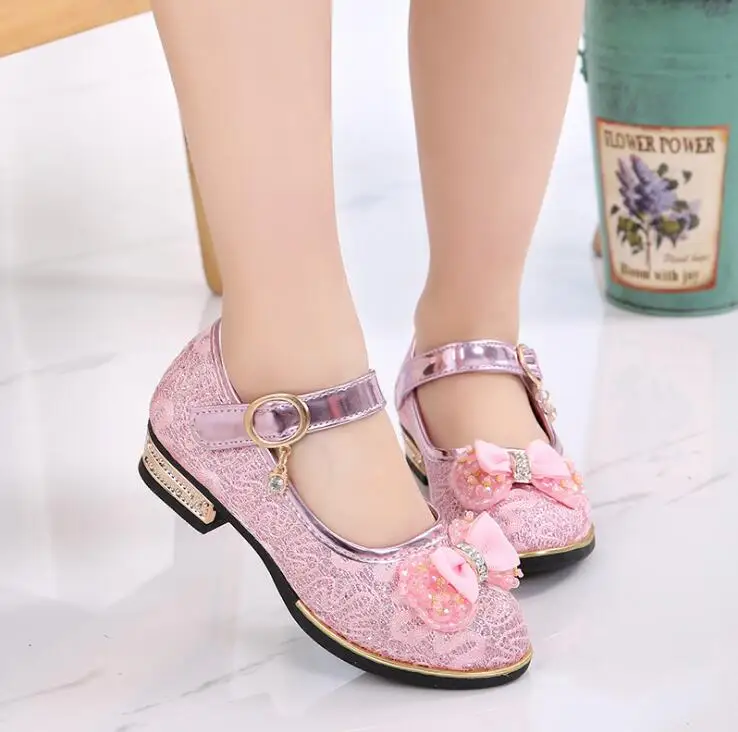 Школьная обувь для девочек 2019 Новый Размеры 27-37 бант Стразы для девочек на высоких каблуках в стиле «Принцесса» вечерние туфли для танцев де...