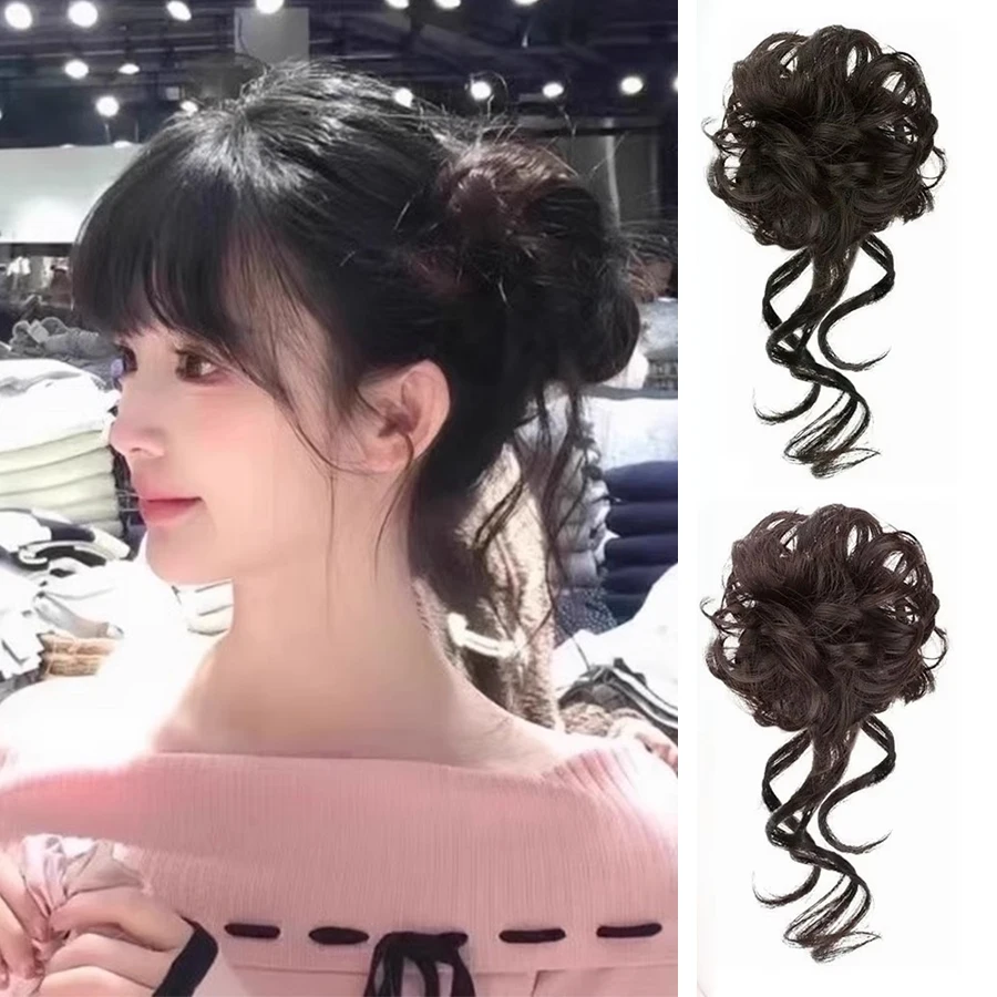2 шт. синтетический парик дракон борода фрикадельки петля для волос темперамент пушистый цветок бутон голова женские вьющиеся волосы длинная борода петля для волос