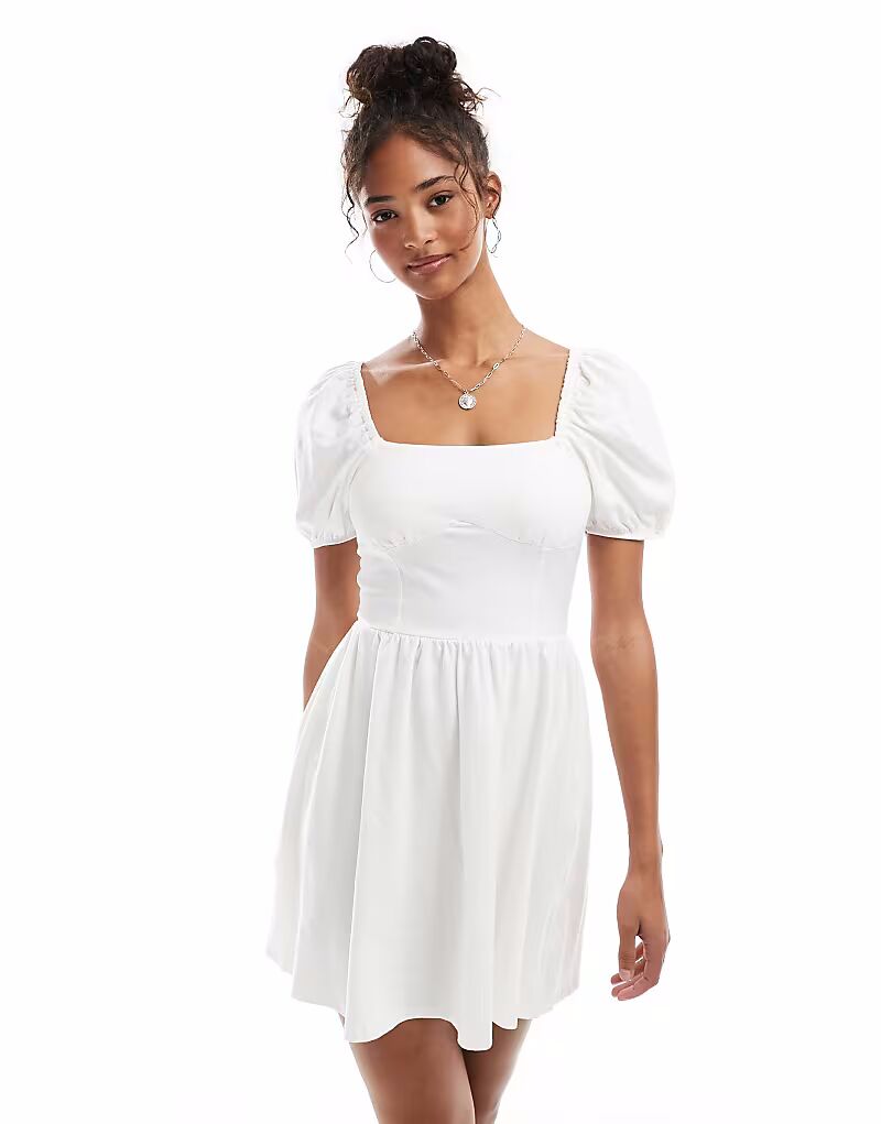 Мисс Селфридж молочница мини-платье с рукавами-фонариками белого цвета Miss Selfridge