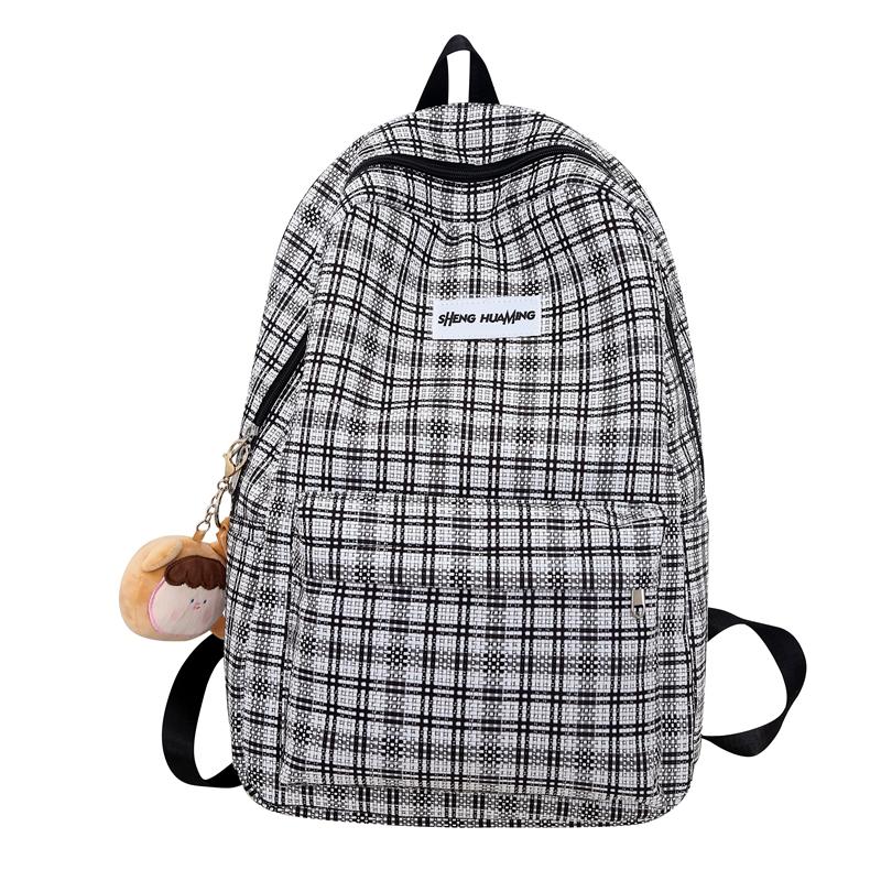 Школьный рюкзак в клетку, женский рюкзак большой емкости, рюкзак для учащихся старших классов средней школы чёрный