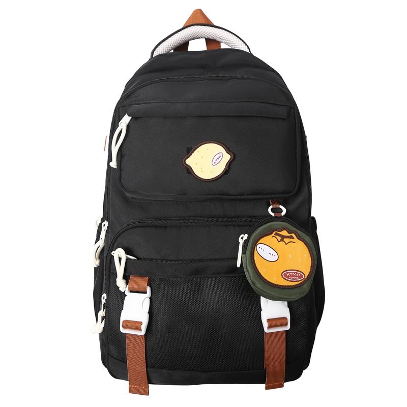 Школьный рюкзак для средней школы, женский, большой емкости, рюкзак для путешествий с цветными блоками и кошельком для монет чёрный
