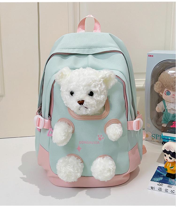 Школьный рюкзак милый мультяшный повседневный школьный рюкзак плюшевая кукла рюкзак для девочек учеников средней школы учеников старшей школы дорожный рюкзак зелёный