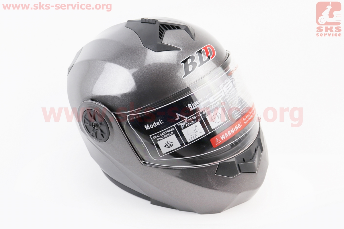 Шлем закрытый с откидным подбородком + откидные очки BLD-159 (53-54см), СЕРЫЙ глянец