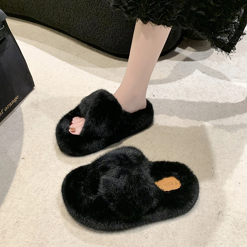 Шлепанцы женские на платформе, меховые сандалии на низком каблуке, плюшевые шлепанцы, ПУ, базовые, без каблука, бежевые, 2023