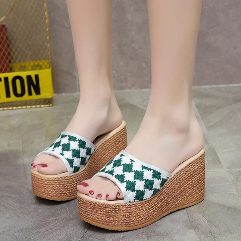 Шлепанцы женские на танкетке, сандалии на толстой подошве, пляжные тапочки, лето 2022