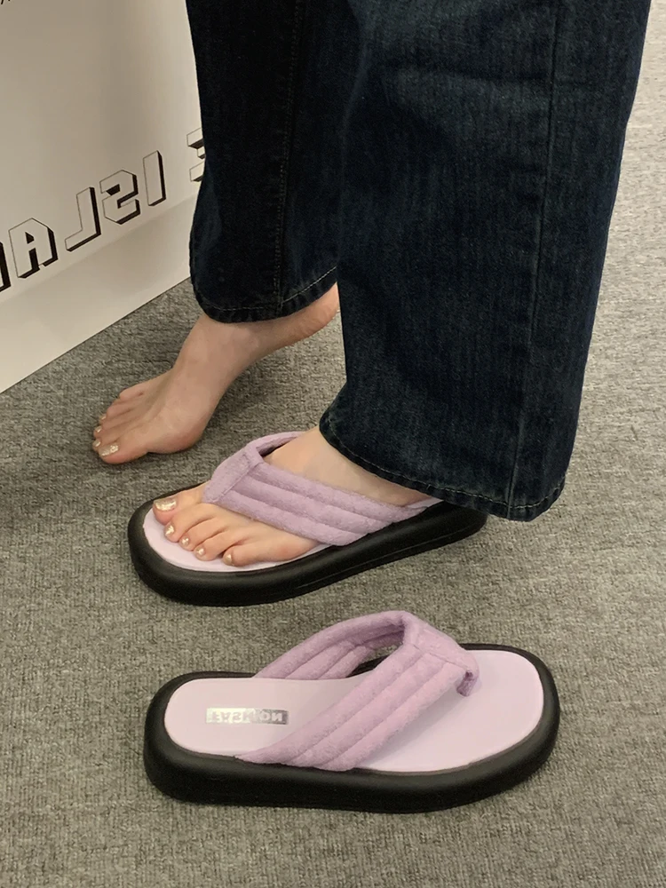 Шлепанцы женские на толстой подошве, модные сандалии с клипсой, Пляжная удобная летняя обувь, 023