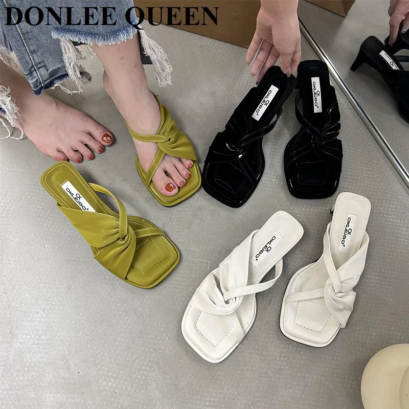 Шлепанцы женские плиссированные на Высоком толстом каблуке, сланцы, элегантные сандалии, модная Уличная обувь, 2022