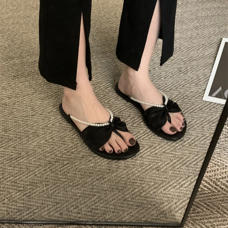 Шлепанцы женские с бантом-бабочкой, повседневные однотонные тапки, лето 2023