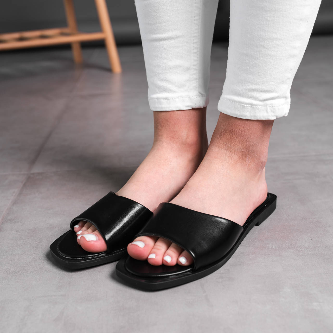 Шлепанцы выполненные из эко - кожа. Дизайн этой модели в черном цвете и с легкостью дополнит любой образ. Женские шлепанцы лёгкие и мягкие – незаменимый атрибут летнего гардероба.